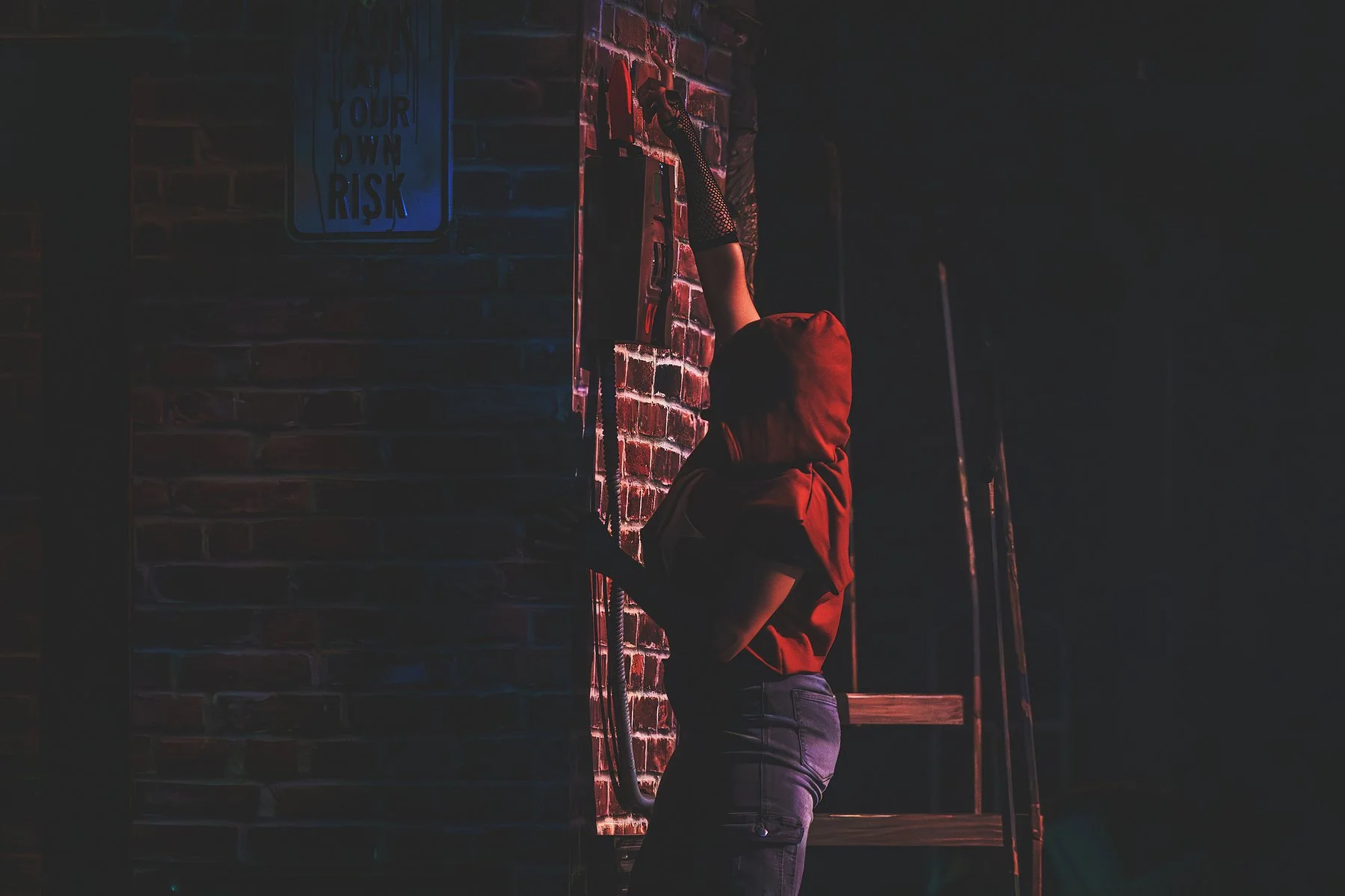 I participated in the construction and decoration of this stage, as well as the rigging and focusing of the themed lighting used during performances. I secondarily acted as the Assistant Stage Manager during the show’s run, working backstage to deliver time calls, cues, and communicate with the light/sound techs throughout the performance.
