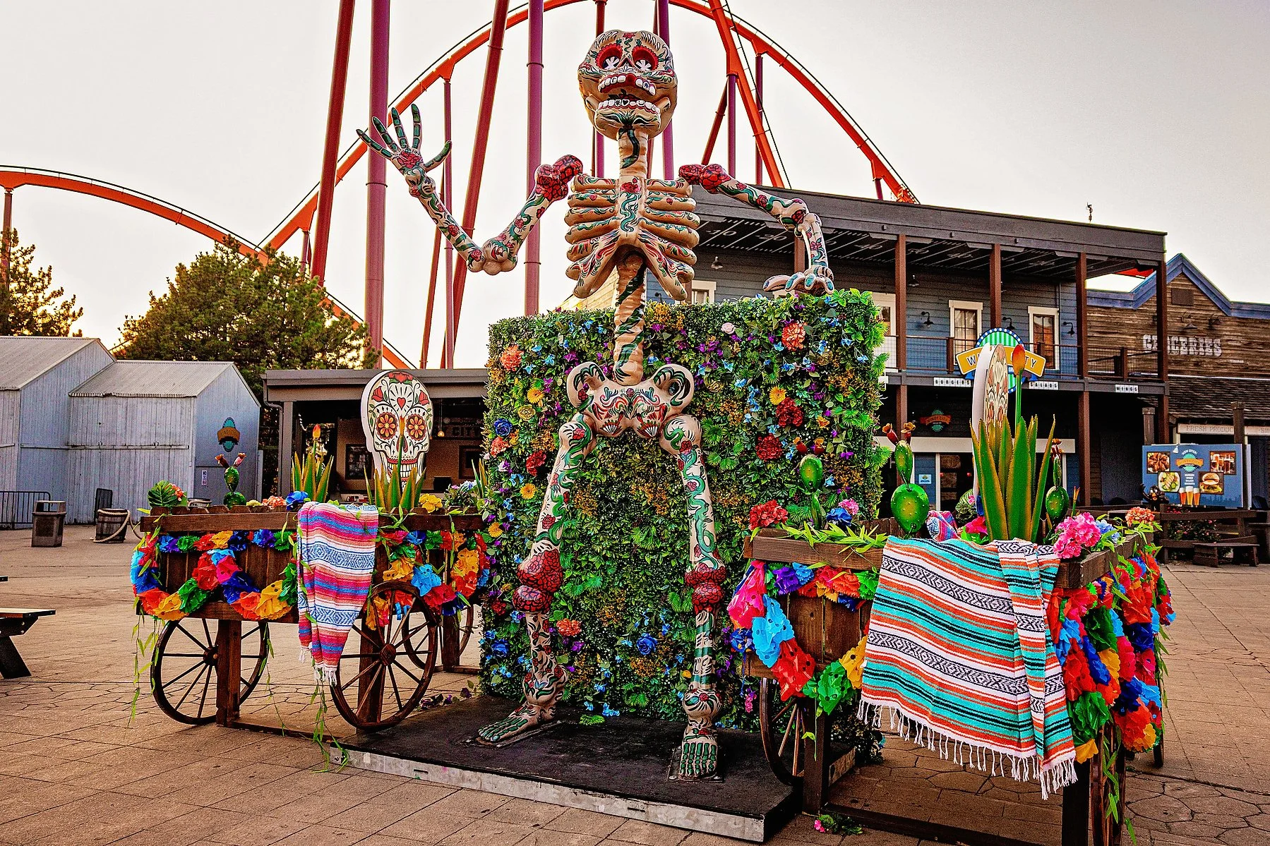 My contributions to the decoration of our Viva sets were plentiful, but my primary focus on this project was overseeing the construction of four decorative wooden wagons, which were reused for multiple later projects, including placement within Los Muertos during Fright Fest, and our Oktoberfest celebration area.
